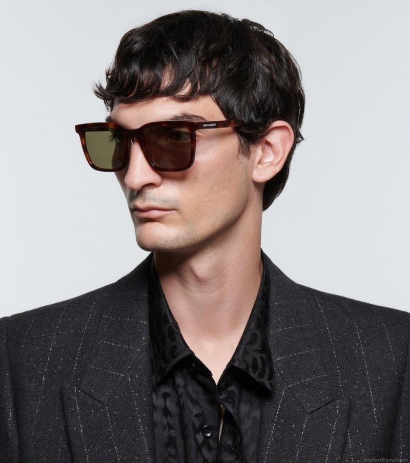 Beckon in the sunshine with Saint Laurent's SL 500 sunglasses. The exaggerated, angular frame is cast from tortoiseshell acetate and finished with classic tinted lenses.