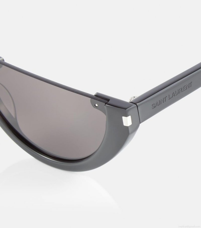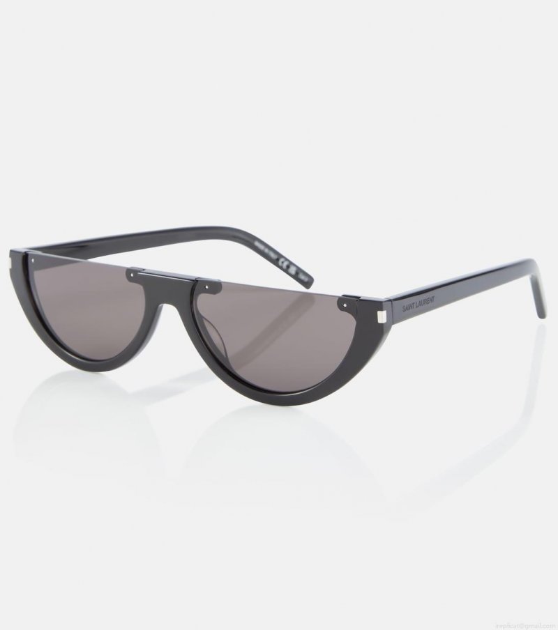 Add a futuristic touch to your accessories edit with these slick half-rim sunglasses from Saint Laurent. The style features an elongated cat-eye silhouette and is finished with grey lenses.
