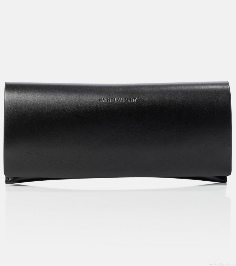 Embrace Saint Laurent's empowered elegance with the SL 563 cat-eye sunglasses. This angled acetate style has an elongated browline with semi-rimless lenses that provide 100% UVA/B protection.