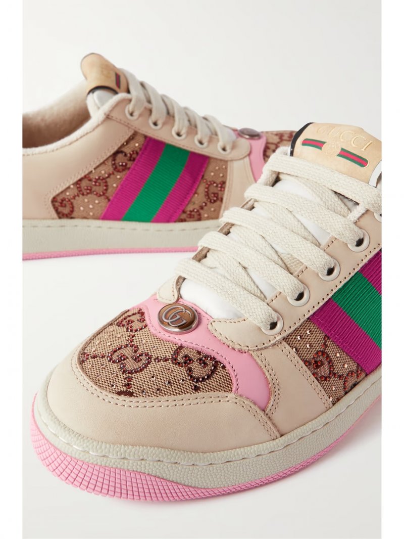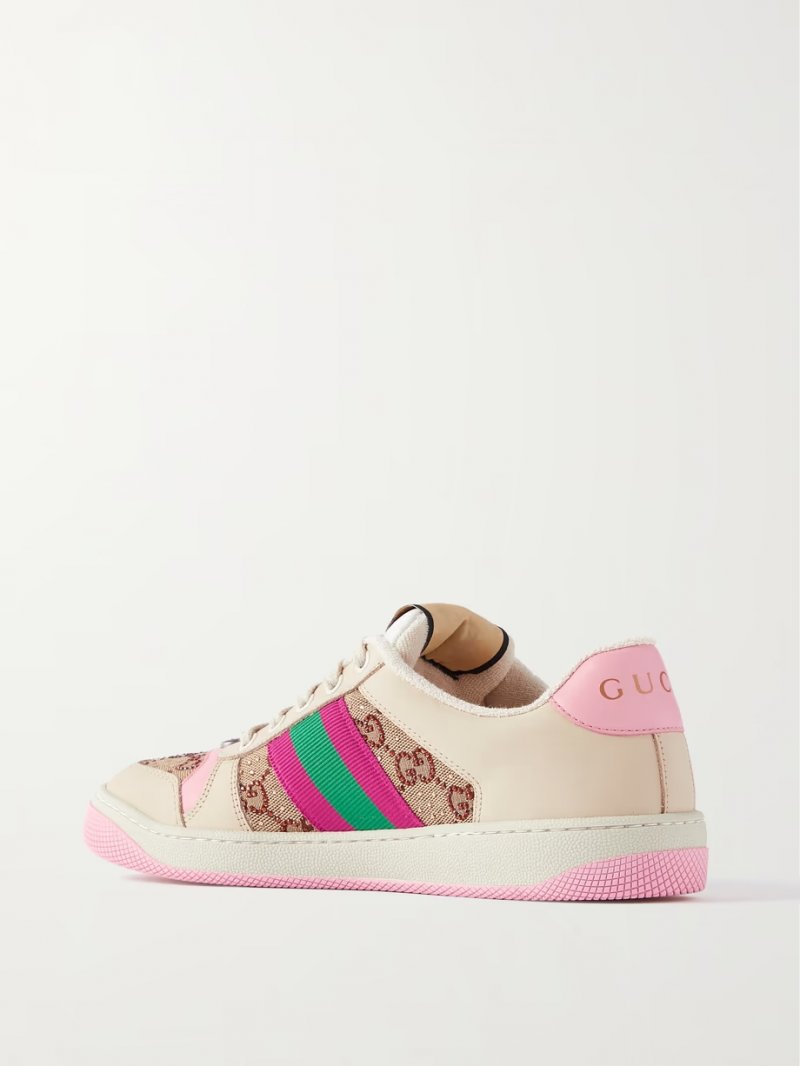 - Beige, pink and white leather (Calf), tonal-brown, green and magenta canvas