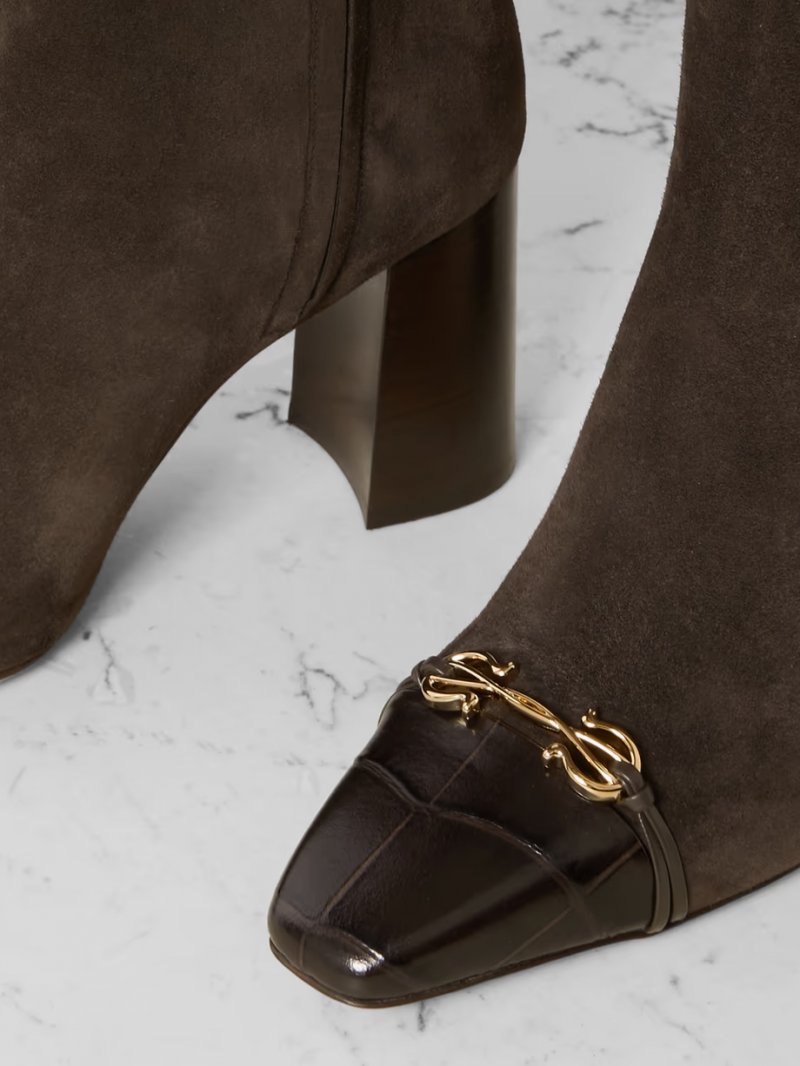 - Brown croc-effect leather and suede (Calf)
