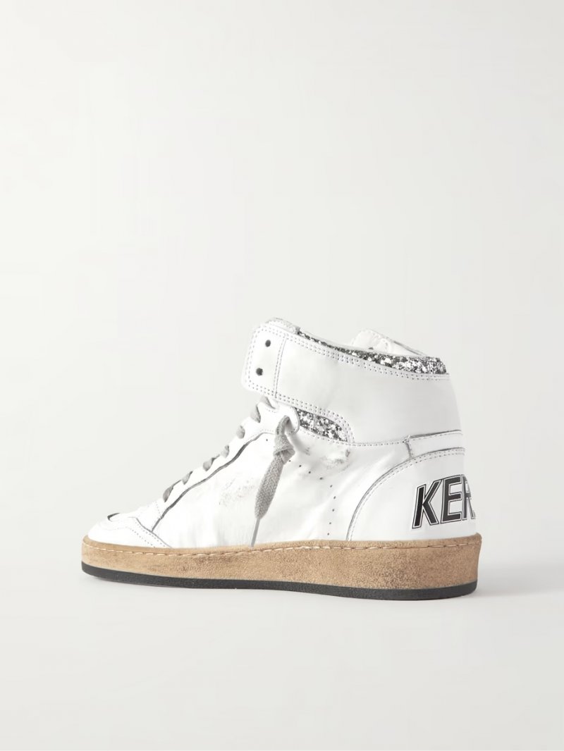 - Off-white, blue and black leather, silver glittered-leather (Lamb)