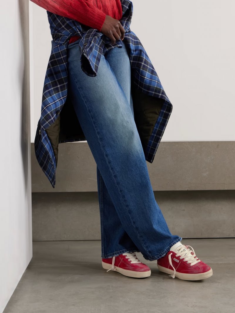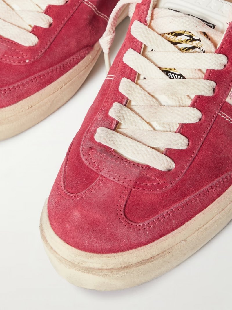 - Burgundy suede, white leather (Cow)