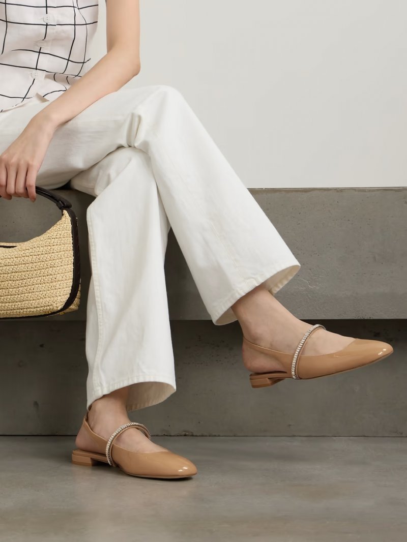 - Beige patent-leather