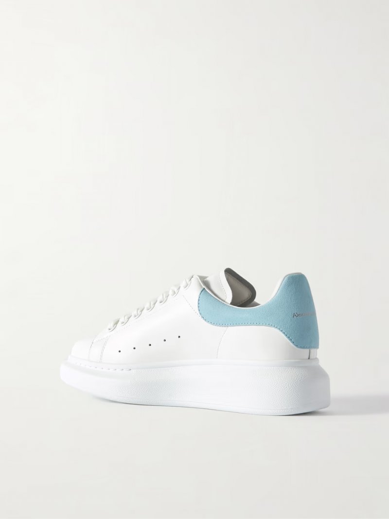 - White leather (Calf), pastel-blue suede (Goat)