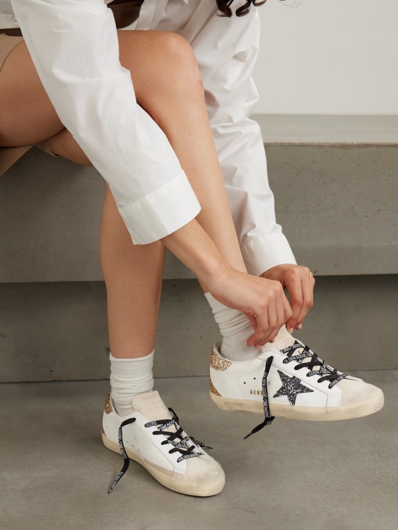 - White leather, gold and silver glittered leather (Cow), beige suede