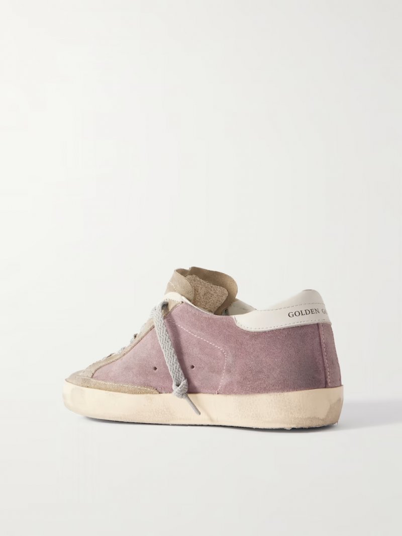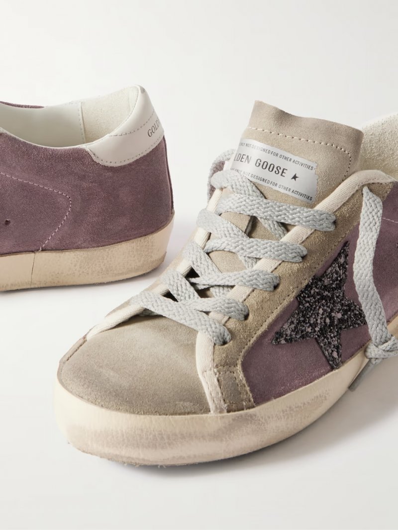 - Pink and light-grey suede, silver and gold glittered suede, white leather (Cow)