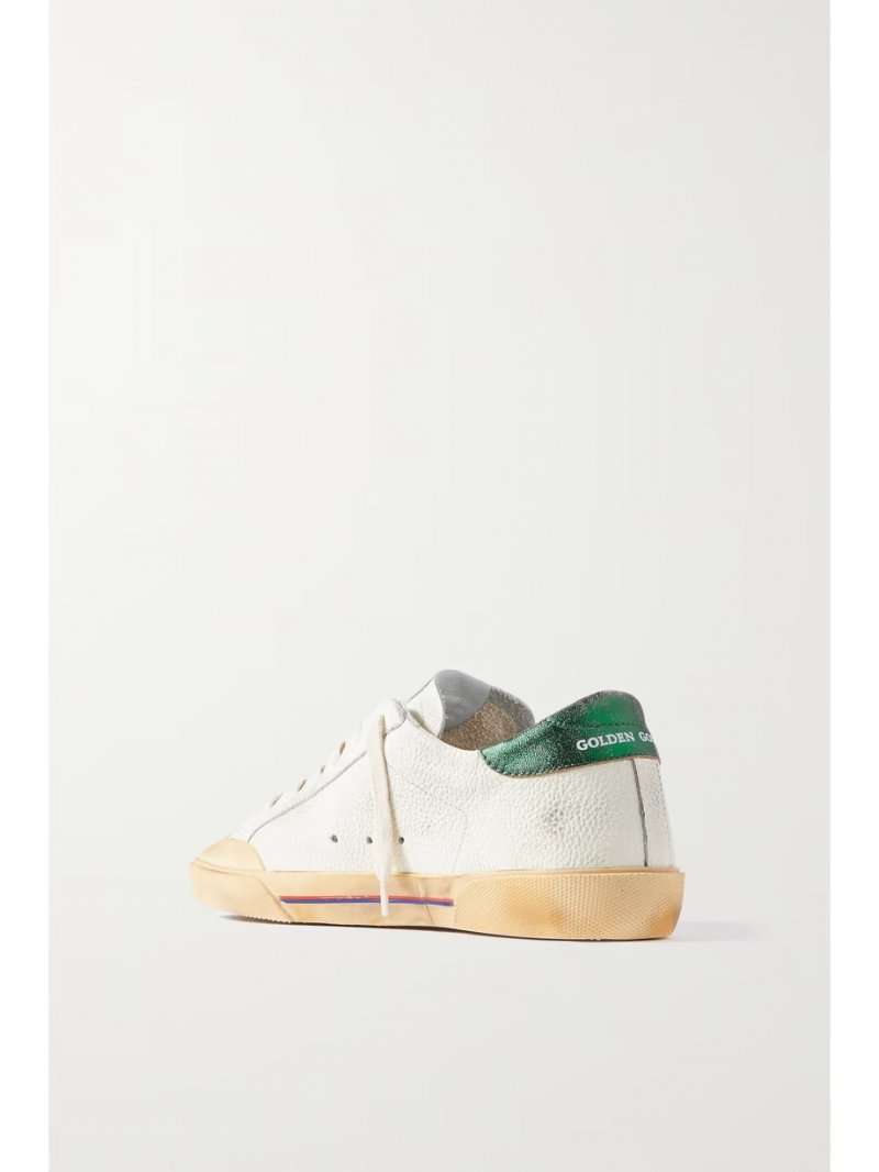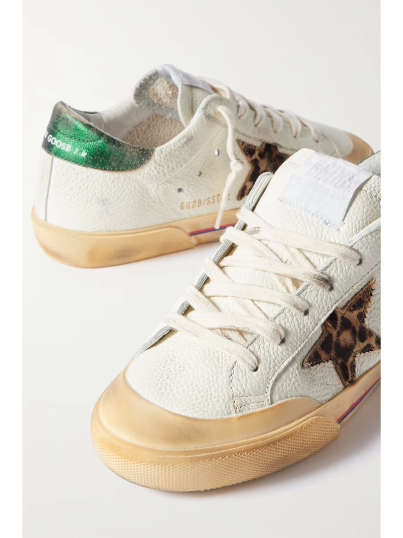 - White and metallic-green leather (Cow), leopard-print calf hair