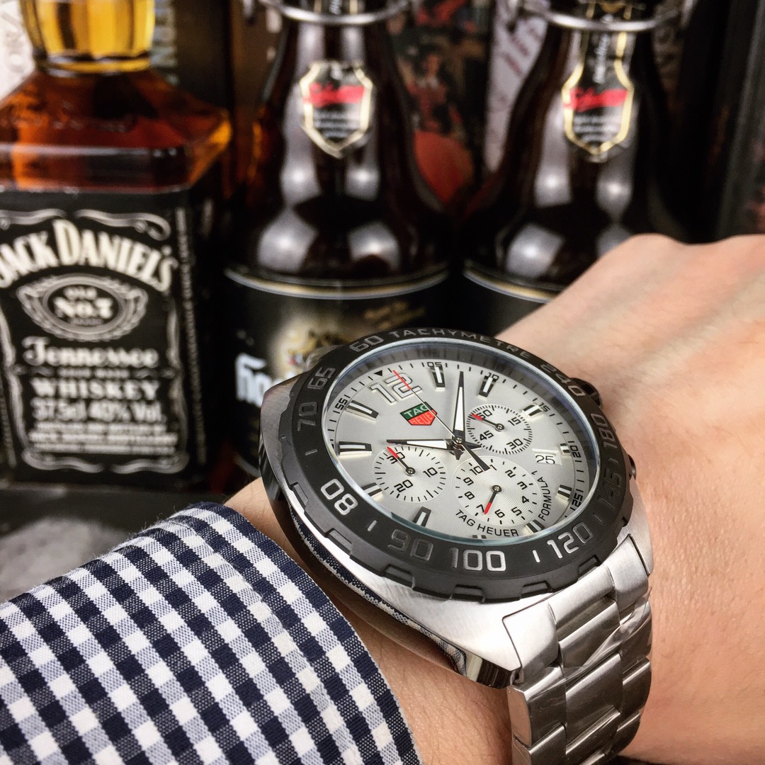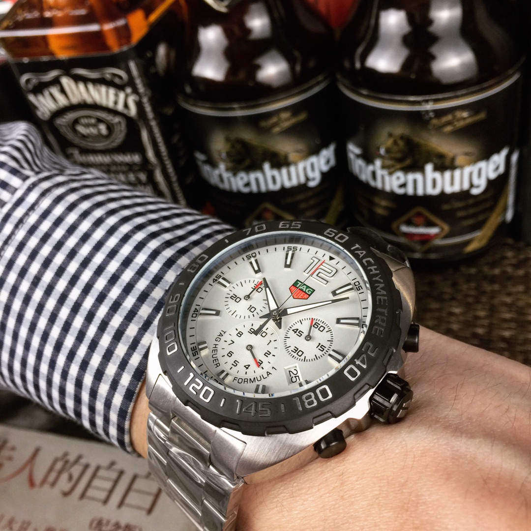 Equipped with a Japanese multifunctional quartz chronograph movement, sandblasted stainless steel case, engraved decorative pattern, screw-in crown, unidirectional rotating bezel, black PVD stainless steel folding clasp, 41mm dial diameter. Embrace the speed and passion on your wrist, fulfilling your unrealized racing dreams.