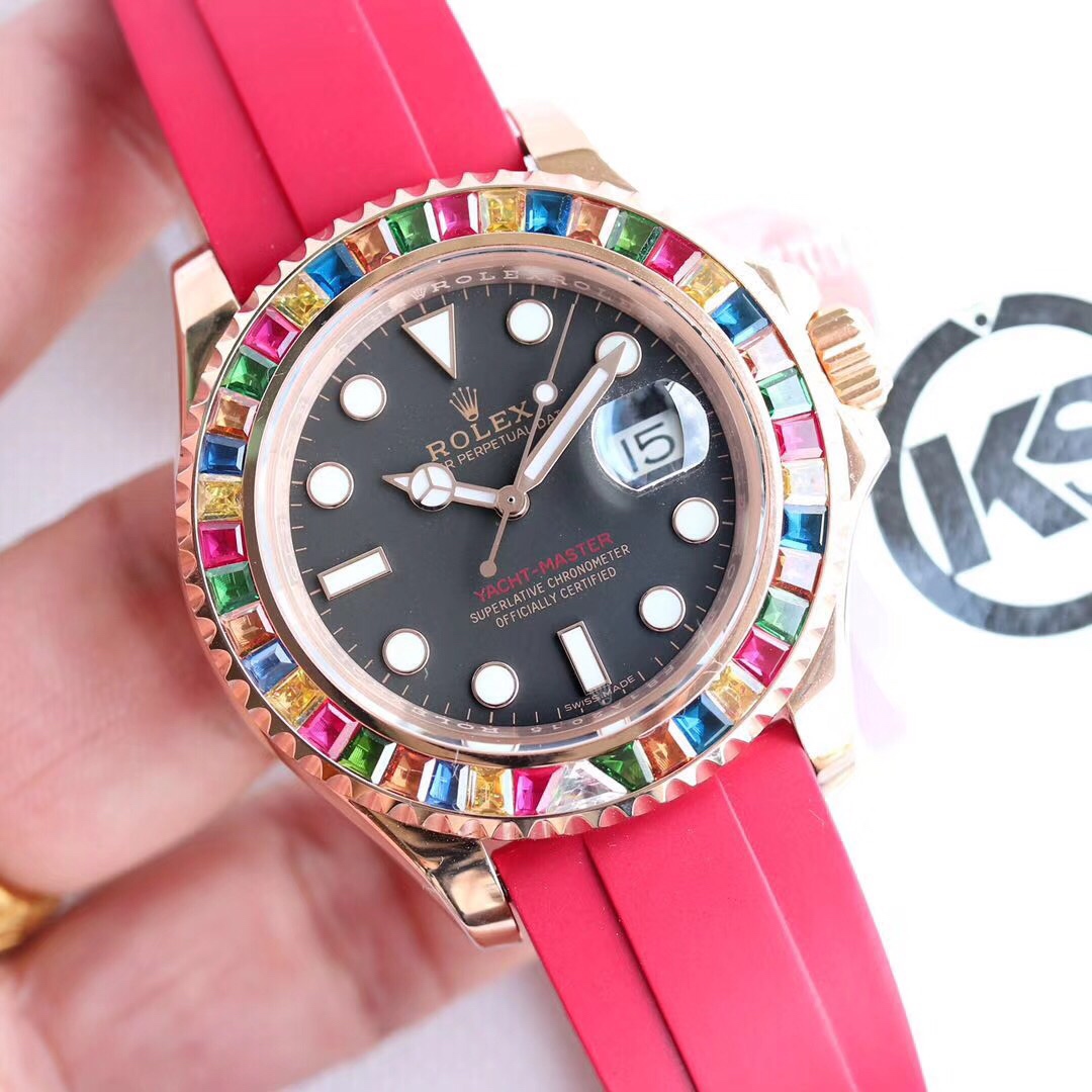 The Rolex Yacht-Master Gold Collection watch is an ideal choice for successful individuals and watch enthusiasts due to its luxurious feel, precise movement, and waterproof performance. With a diameter of 40mm, it fits most people comfortably, while its 100-meter water resistance makes it suitable for various daily activities and shallow-water diving. The watch features the 3135 caliber movement, ensuring accurate timekeeping and reliable performance. The gold bezel, black ceramic dial, and gold hands and hour markers add a touch of luxury and visual impact. Whether in business or leisure settings, the Rolex Yacht-Master Gold Collection watch showcases your taste and success.