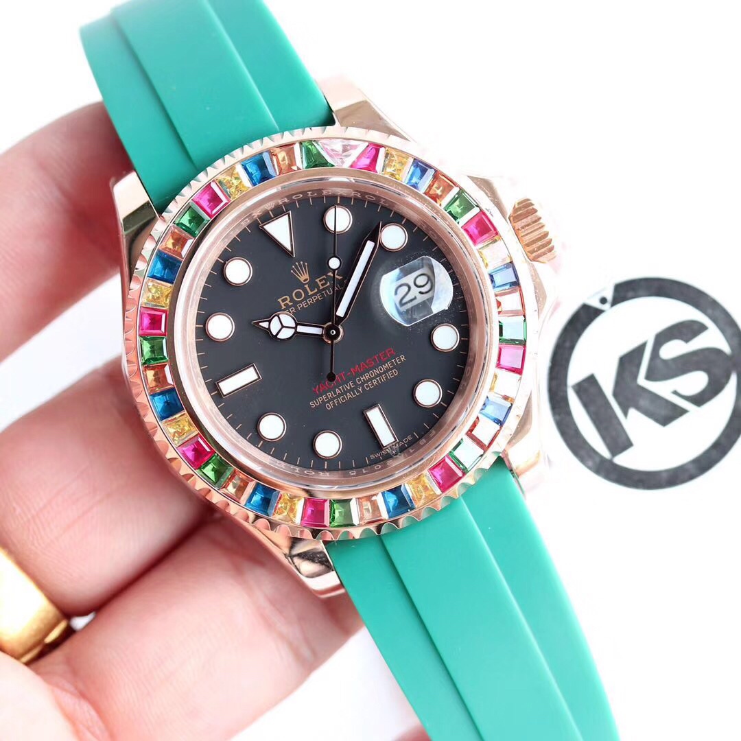 The Rolex Yacht-Master Gold Collection watch is an ideal choice for successful individuals and watch enthusiasts due to its luxurious feel, precise movement, and waterproof performance. With a diameter of 40mm, it fits most people comfortably, while its 100-meter water resistance makes it suitable for various daily activities and shallow-water diving. The watch features the 3135 caliber movement, ensuring accurate timekeeping and reliable performance. The gold bezel, black ceramic dial, and gold hands and hour markers add a touch of luxury and visual impact. Whether in business or leisure settings, the Rolex Yacht-Master Gold Collection watch showcases your taste and success.