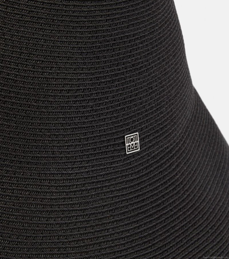 Toteme's sharp focus on precise silhouettes is spotlighted by this sculptural sun hat. The black design has a woven, exaggerated construction with a silver-tone monogram plaque and a defined brim.