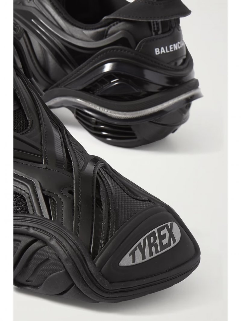 - Black rubber, mesh and faux leather