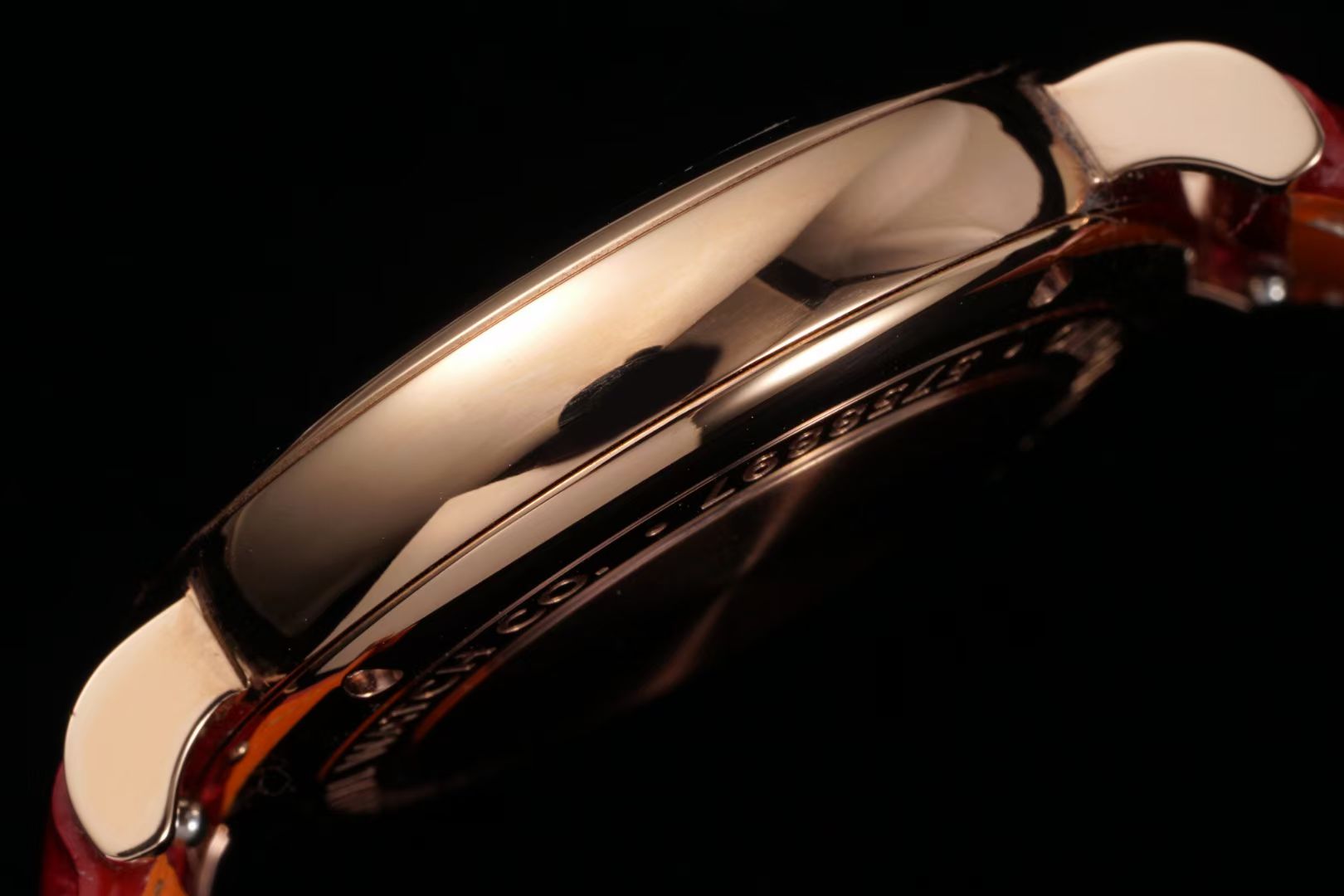 The IWC Portofino series watch is famous for its classic and elegant design style.The 34-mm diameter shows a medium-sized appearance, suitable for most wrist sizes.Equipped with an automatic movement, it ensures accurate and reliable time display.The watch has the functions of hours, minutes, and seconds, meeting the basic needs of daily use.The water resistance of 30 meters makes the watch suitable for water passion in daily life.The sapphire crystal glass lens has excellent transparency and scratch resistance, protecting the clarity of the dial.Equipped with a pin buckle design, it is simple and elegant.The stainless steel case exhibits a sturdy and classic appearance.Paired with a leather strap, it is both elegant and comfortable.The IWC Portofino series watch, with its exquisite craftsmanship and classic design, brings endless charm to those who love elegant style.