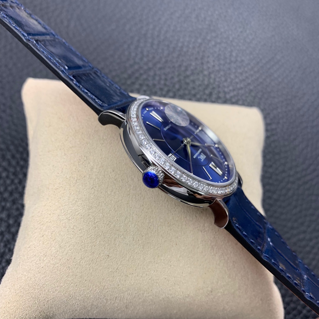 The IWC Portofino series watch is famous for its classic and elegant design style.The 37-mm diameter shows a medium-sized appearance, suitable for most wrist sizes.Equipped with an automatic movement, it ensures accurate and reliable time display.The watch has the functions of hours, minutes, and seconds, meeting the basic needs of daily use.The water resistance of 30 meters makes the watch suitable for water passion in daily life.The sapphire crystal glass lens has excellent transparency and scratch resistance, protecting the clarity of the dial.Equipped with a pin buckle design, it is simple and elegant.The stainless steel case exhibits a sturdy and classic appearance.Paired with a leather strap, it is both elegant and comfortable.The IWC Portofino series watch, with its exquisite craftsmanship and classic design, brings endless charm to those who love elegant style.