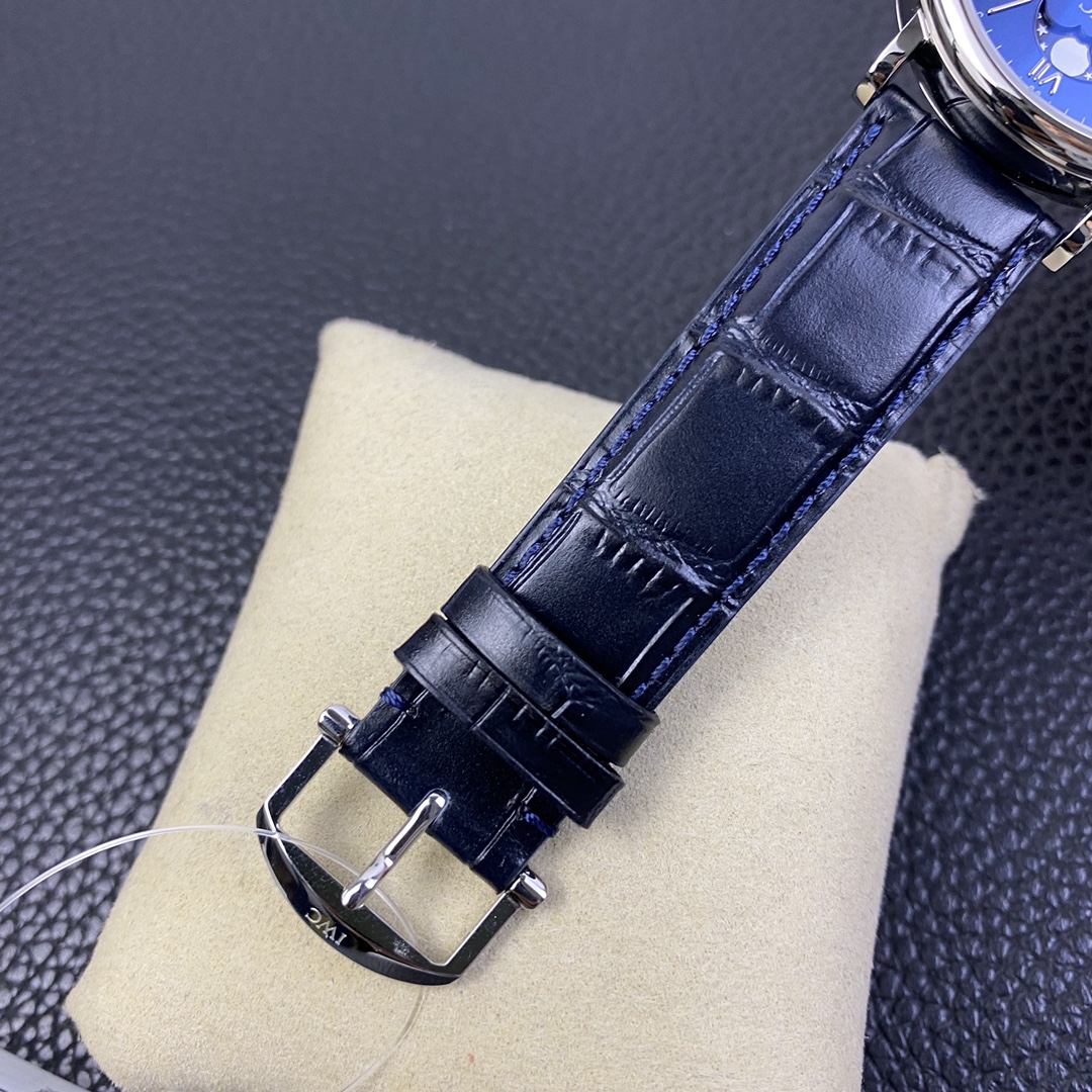 The IWC Portofino series watch is famous for its classic and elegant design style.The 40-mm diameter shows a medium-sized appearance, suitable for most wrist sizes.Equipped with an automatic movement, it ensures accurate and reliable time display.The watch has the functions of hours, minutes, and seconds, meeting the basic needs of daily use.The water resistance of 30 meters makes the watch suitable for water passion in daily life.The sapphire crystal glass lens has excellent transparency and scratch resistance, protecting the clarity of the dial.Equipped with a pin buckle design, it is simple and elegant.The stainless steel case exhibits a sturdy and classic appearance.Paired with a leather strap, it is both elegant and comfortable.The IWC Portofino series watch, with its exquisite craftsmanship and classic design, brings endless charm to those who love elegant style.