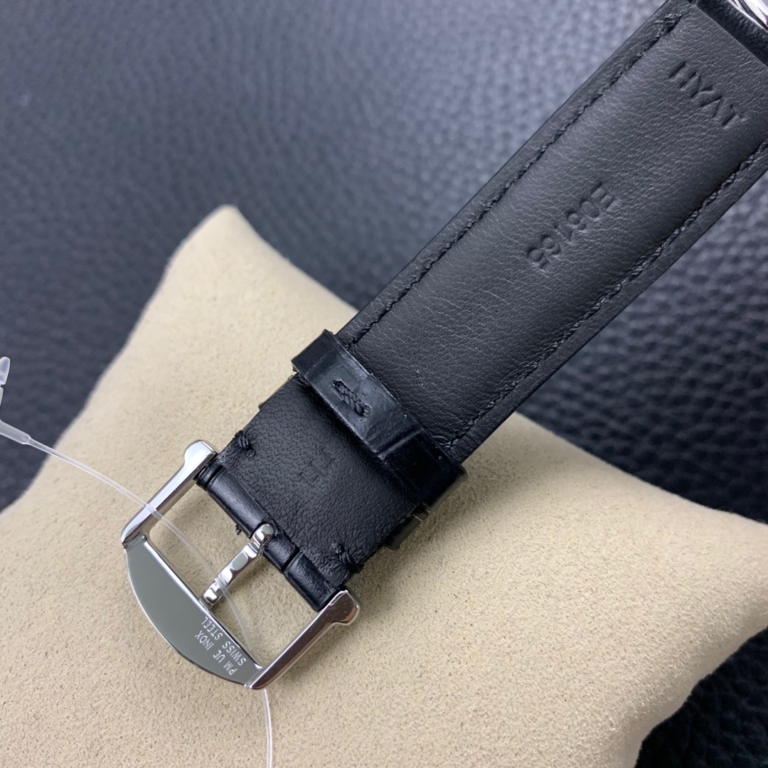 The IWC Portofino series watch is famous for its classic and elegant design style.The 40-mm diameter shows a medium-sized appearance, suitable for most wrist sizes.Equipped with an automatic movement, it ensures accurate and reliable time display.The watch has the functions of hours, minutes, and seconds, meeting the basic needs of daily use.The water resistance of 30 meters makes the watch suitable for water passion in daily life.The sapphire crystal glass lens has excellent transparency and scratch resistance, protecting the clarity of the dial.Equipped with a pin buckle design, it is simple and elegant.The stainless steel case exhibits a sturdy and classic appearance.Paired with a leather strap, it is both elegant and comfortable.The IWC Portofino series watch, with its exquisite craftsmanship and classic design, brings endless charm to those who love elegant style.