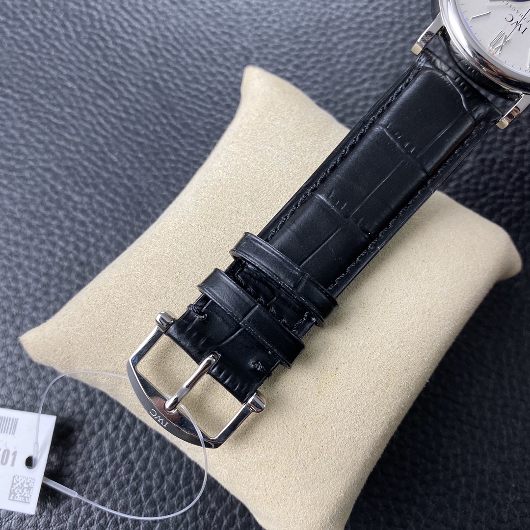The IWC Portofino series watch is famous for its classic and elegant design style.The 40-mm diameter shows a medium-sized appearance, suitable for most wrist sizes.Equipped with an automatic movement, it ensures accurate and reliable time display.The watch has the functions of hours, minutes, and seconds, meeting the basic needs of daily use.The water resistance of 30 meters makes the watch suitable for water passion in daily life.The sapphire crystal glass lens has excellent transparency and scratch resistance, protecting the clarity of the dial.Equipped with a pin buckle design, it is simple and elegant.The stainless steel case exhibits a sturdy and classic appearance.Paired with a leather strap, it is both elegant and comfortable.The IWC Portofino series watch, with its exquisite craftsmanship and classic design, brings endless charm to those who love elegant style.