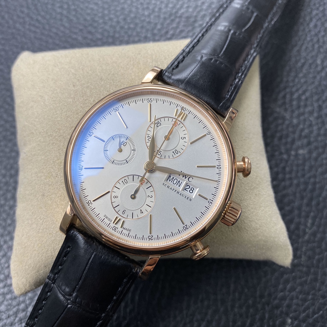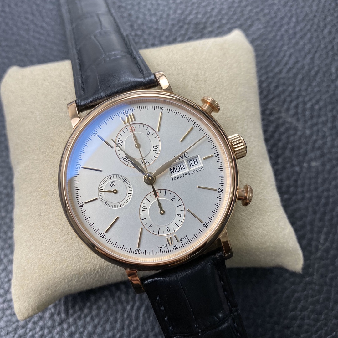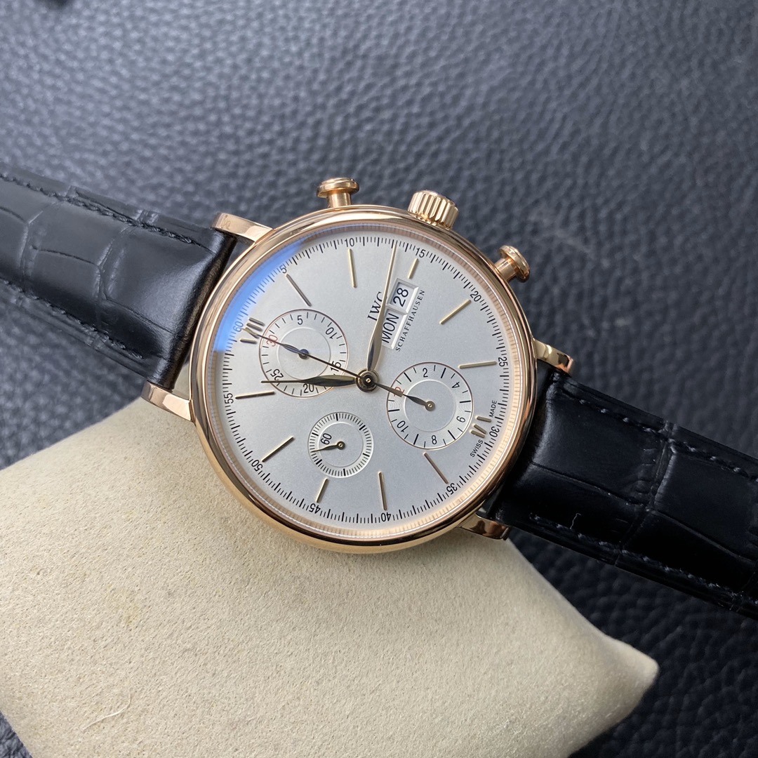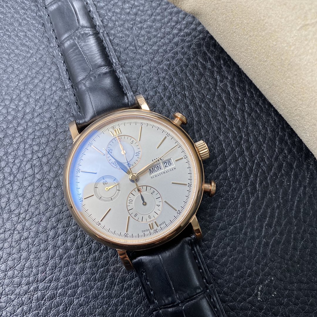 The IWC Portofino series watch is famous for its classic and elegant design style.The 42-mm diameter shows a medium-sized appearance, suitable for most wrist sizes.Equipped with an automatic movement, it ensures accurate and reliable time display.The watch has the functions of hours, minutes, and seconds, meeting the basic needs of daily use.The water resistance of 30 meters makes the watch suitable for water passion in daily life.The sapphire crystal glass lens has excellent transparency and scratch resistance, protecting the clarity of the dial.Equipped with a pin buckle design, it is simple and elegant.The stainless steel case exhibits a sturdy and classic appearance.Paired with a leather strap, it is both elegant and comfortable.The IWC Portofino series watch, with its exquisite craftsmanship and classic design, brings endless charm to those who love elegant style.