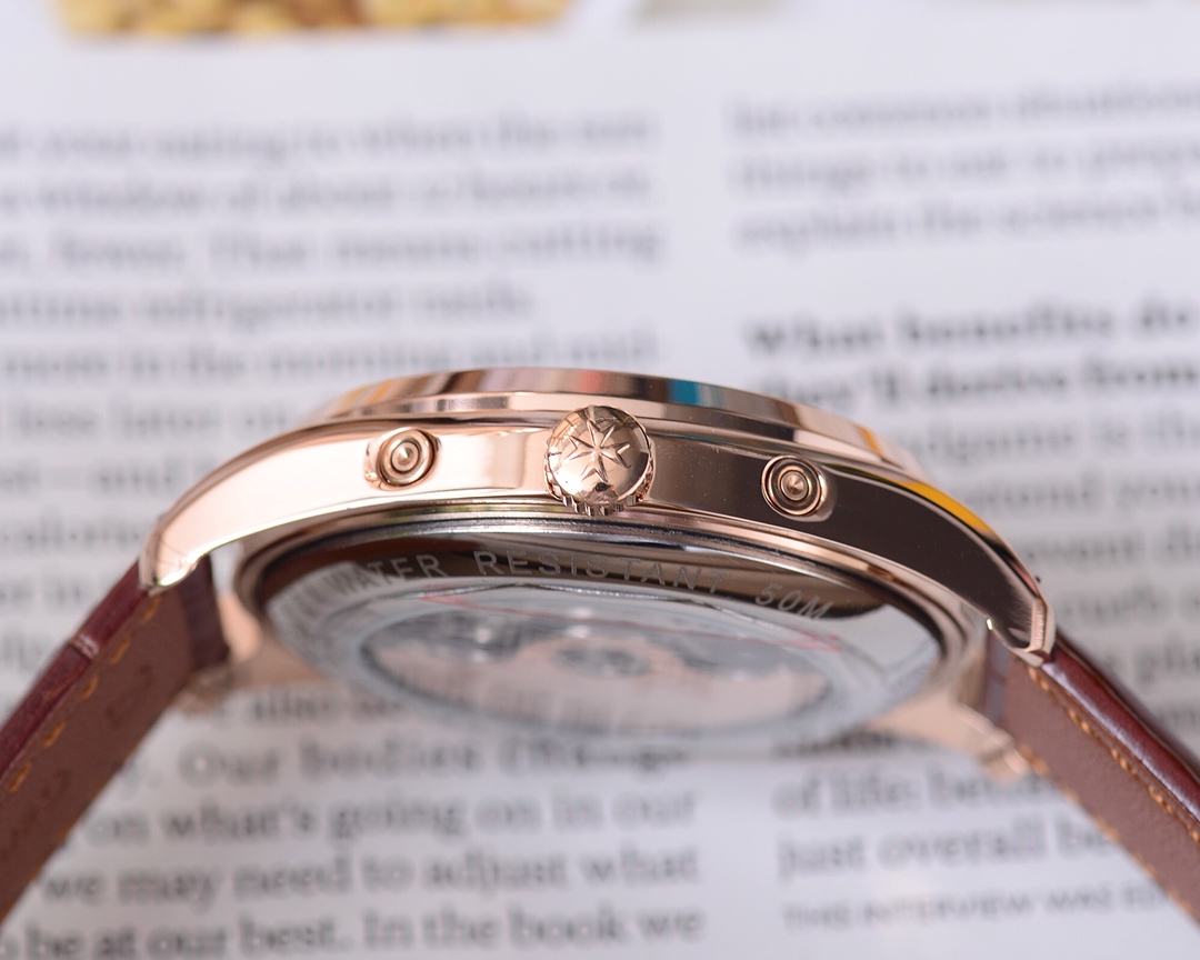 Vacheron Constantin is renowned for its exquisite design and exceptional watchmaking craftsmanship. With a diameter of 41mm and a thickness of 11mm, the watch showcases a medium-sized appearance that suits most men’s wrist sizes. It is equipped with an automatic movement, ensuring accurate and reliable timekeeping. The watch features hour, minute, and second functions, meeting the basic daily needs. The mineral crystal glass provides excellent transparency and scratch resistance, preserving the clarity of the dial. The watch is adorned with a fine buckle design, showcasing delicacy and a sense of luxury. The stainless steel case exhibits durability, a timeless aesthetic, and highlights the brand’s craftsmanship. Paired with a leather strap, it offers both comfort and style. Vacheron Constantin’s fine men’s watch captivates gentlemen with its elegant appearance and superb quality, bringing endless charm to those who appreciate refinement and taste.
