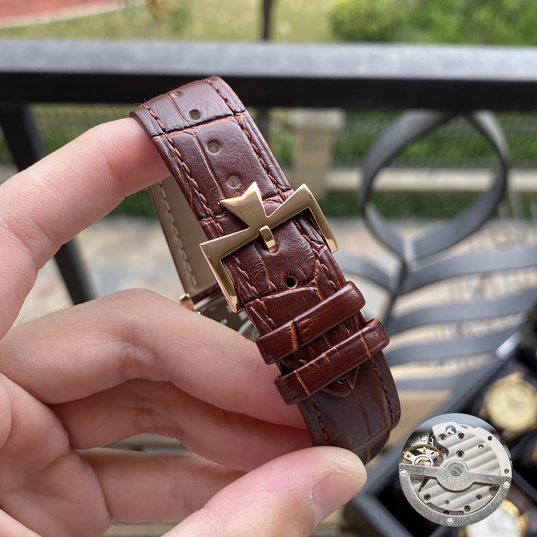 Vacheron Constantin is renowned for its exquisite design and exceptional watchmaking craftsmanship. With a diameter of 42mm and a thickness of 12mm, the watch showcases a medium-sized appearance that suits most men’s wrist sizes. It is equipped with an automatic movement, ensuring accurate and reliable timekeeping. The watch features hour, minute, and second functions, meeting the basic daily needs. The mineral crystal glass provides excellent transparency and scratch resistance, preserving the clarity of the dial. The watch is adorned with a fine buckle design, showcasing delicacy and a sense of luxury. The stainless steel case exhibits durability, a timeless aesthetic, and highlights the brand’s craftsmanship. Paired with a leather strap, it offers both comfort and style. Vacheron Constantin’s fine men’s watch captivates gentlemen with its elegant appearance and superb quality, bringing endless charm to those who appreciate refinement and taste.