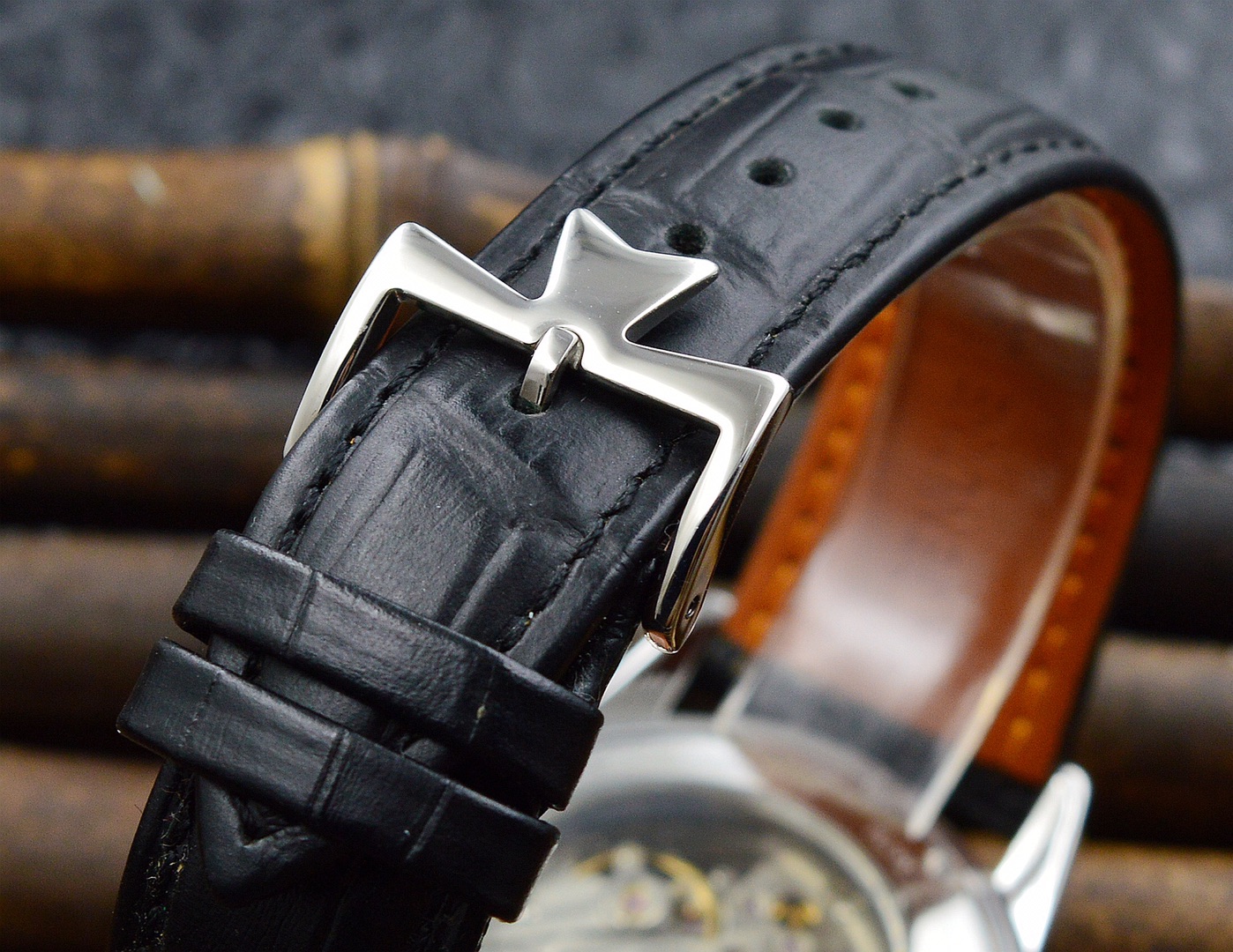 Strap: The watch is paired with a leather strap, offering both comfort and style, adding an elegant touch to the overall look.