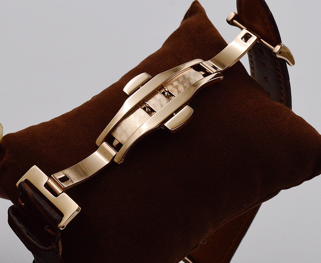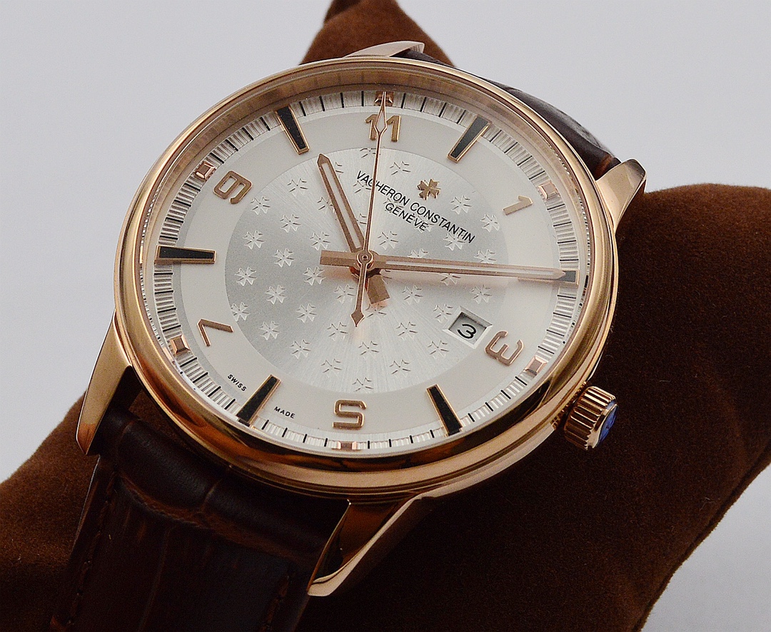 Vacheron Constantin is renowned for its exquisite design and exceptional watchmaking craftsmanship. With a diameter of 42mm and a thickness of 12mm, the watch showcases a medium-sized appearance that suits most men’s wrist sizes. It is equipped with an automatic movement, ensuring accurate and reliable timekeeping. The watch features hour, minute, and second functions, meeting the basic daily needs. The mineral crystal glass provides excellent transparency and scratch resistance, preserving the clarity of the dial. The watch is adorned with a fine buckle design, showcasing delicacy and a sense of luxury. The stainless steel case exhibits durability, a timeless aesthetic, and highlights the brand’s craftsmanship. Paired with a leather strap, it offers both comfort and style. Vacheron Constantin’s fine men’s watch captivates gentlemen with its elegant appearance and superb quality, bringing endless charm to those who appreciate refinement and taste.