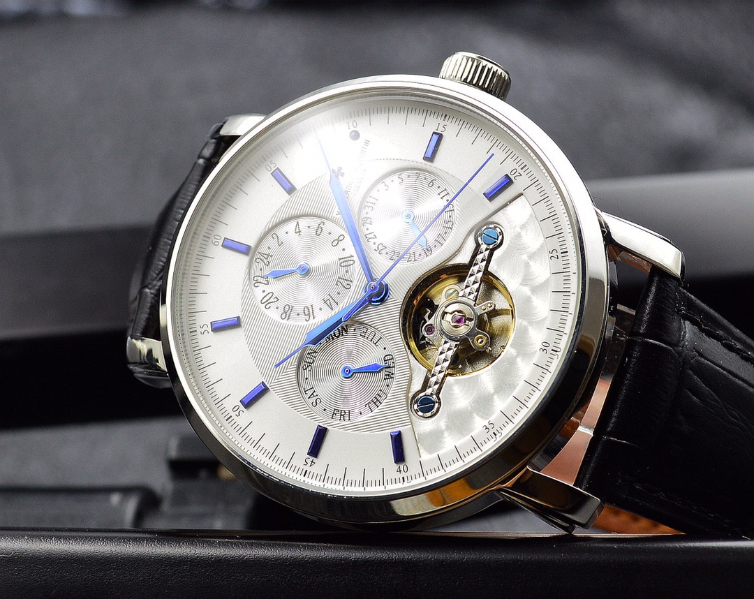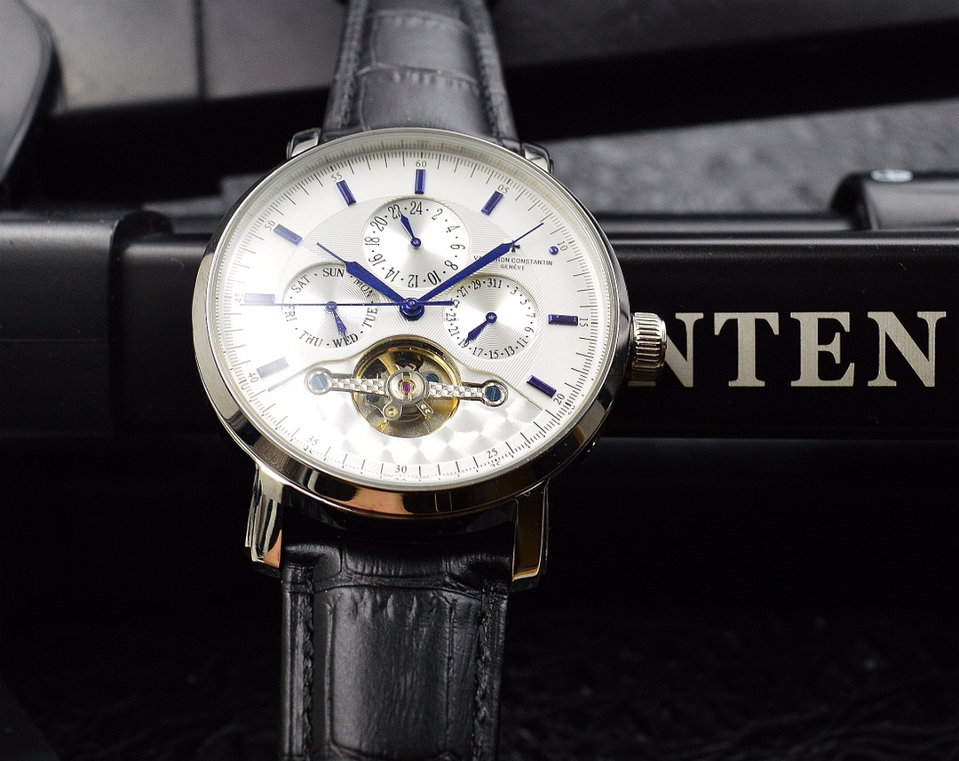 Vacheron Constantin is renowned for its exquisite design and exceptional watchmaking craftsmanship. With a diameter of 42mm and a thickness of 12mm, the watch showcases a medium-sized appearance that suits most men’s wrist sizes. It is equipped with an automatic movement, ensuring accurate and reliable timekeeping. The watch features hour, minute, and second functions, meeting the basic daily needs. The mineral crystal glass provides excellent transparency and scratch resistance, preserving the clarity of the dial. The watch is adorned with a fine buckle design, showcasing delicacy and a sense of luxury. The stainless steel case exhibits durability, a timeless aesthetic, and highlights the brand’s craftsmanship. Paired with a leather strap, it offers both comfort and style. Vacheron Constantin’s fine men’s watch captivates gentlemen with its elegant appearance and superb quality, bringing endless charm to those who appreciate refinement and taste.