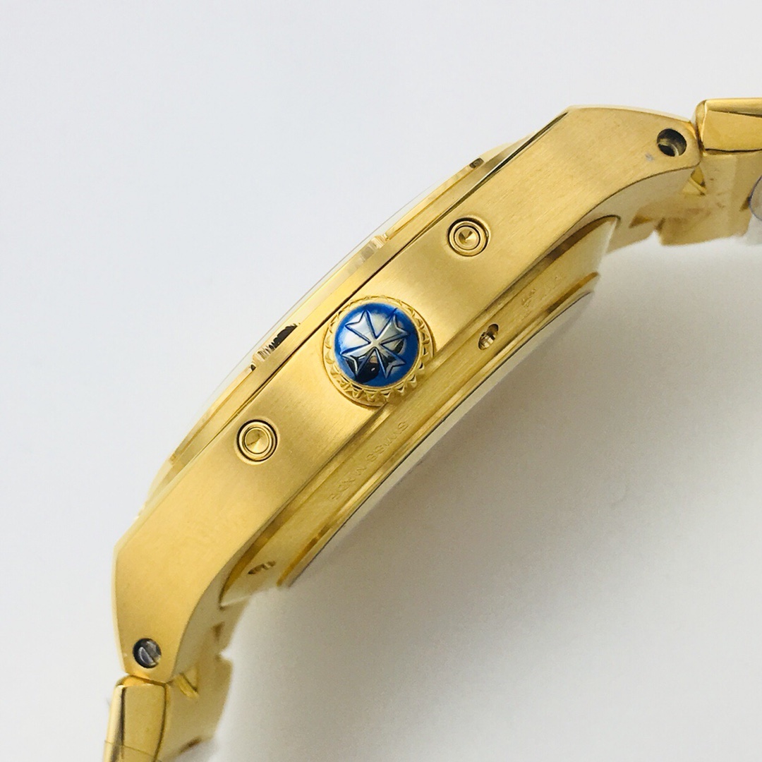 Material: 316L stainless steel case, screw-down crown, and a round shape with a slightly elliptical form, representing the distinctive essence of the Overseas collection!