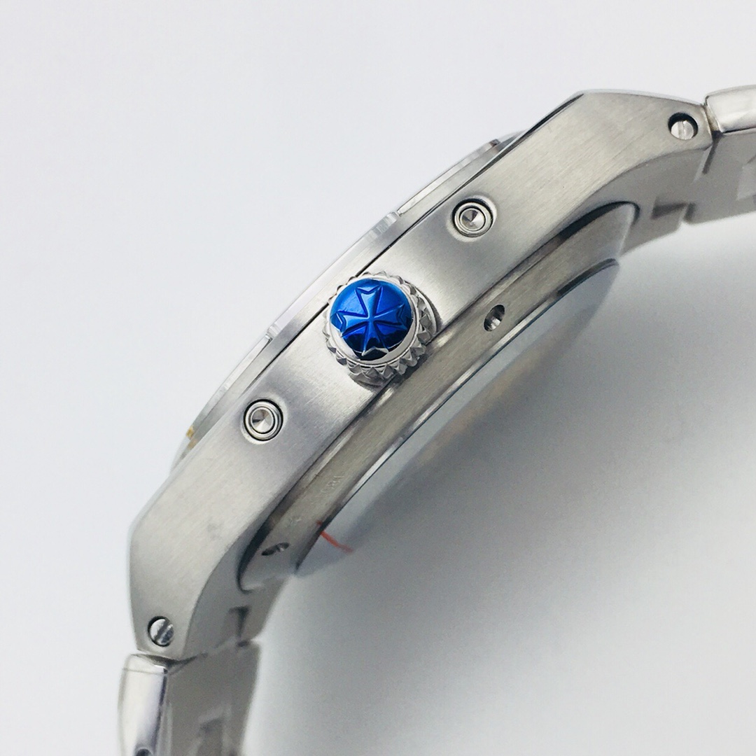 Material: 316L stainless steel case, screw-down crown, and a round shape with a slightly elliptical form, representing the distinctive essence of the Overseas collection!