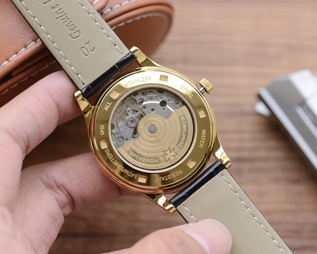 The Vacheron Constantin Master Series men’s watches are renowned for their unique design and excellent watchmaking techniques. The diameter of 40mm is moderate, showcasing a classic and exquisite appearance. Equipped with an automatic movement, ensuring accurate and reliable time display. The watch has hour, minute, and second functions to meet the basic needs of daily use. The waterproof performance of 30 meters meets the waterproof needs of daily life. Mineral reinforced glass mirrors have excellent transparency and scratch resistance, protecting the clarity of the dial. Equipped with exquisite needle buckle design, showcasing delicacy and a sense of luxury. The stainless steel case showcases a sturdy, durable and classic appearance, showcasing the brand’s craftsmanship. Paired with leather strap, it combines comfort and fashion. TheVacheron Constantin Master Series men’s watches, with their unique design and excellent quality, bring endless charm to men who love taste and quality.