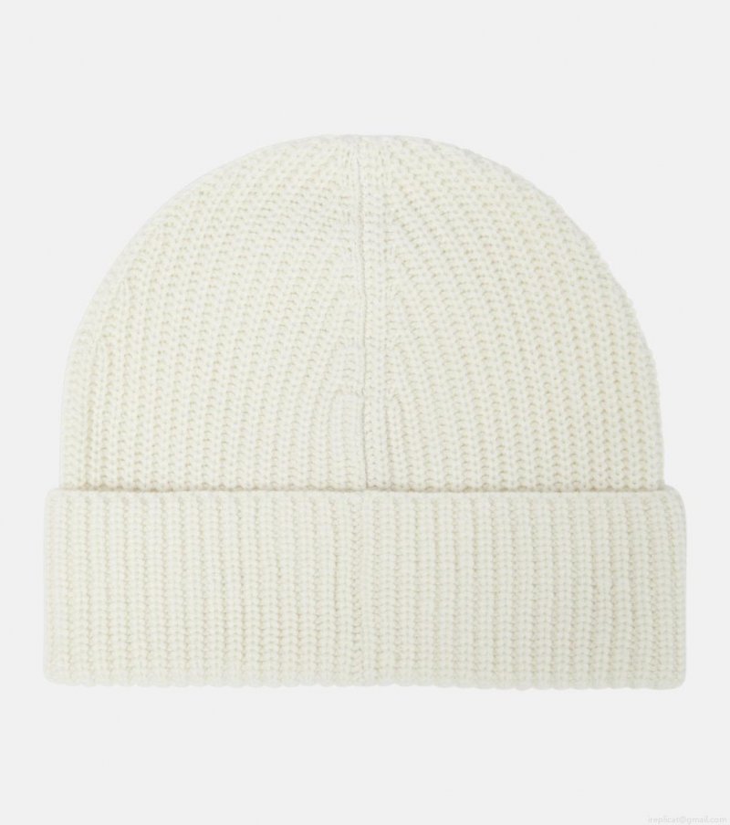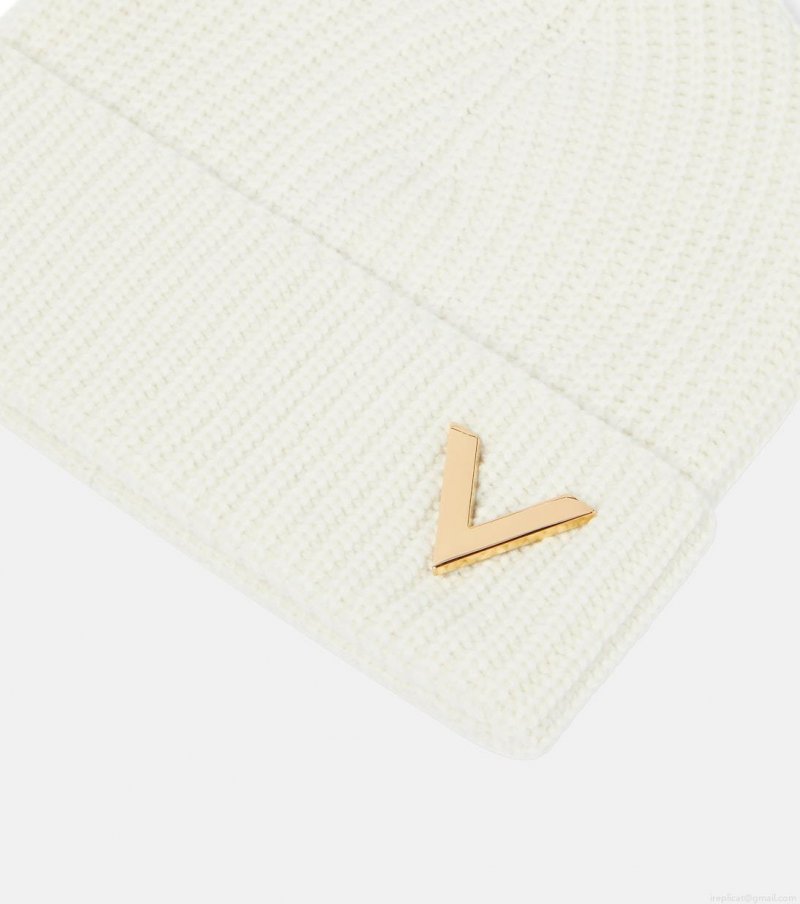 Made from pure cashmere yarns in white, this rib-knit beanie from Valentino features a gold-toned V hardware on the brim.