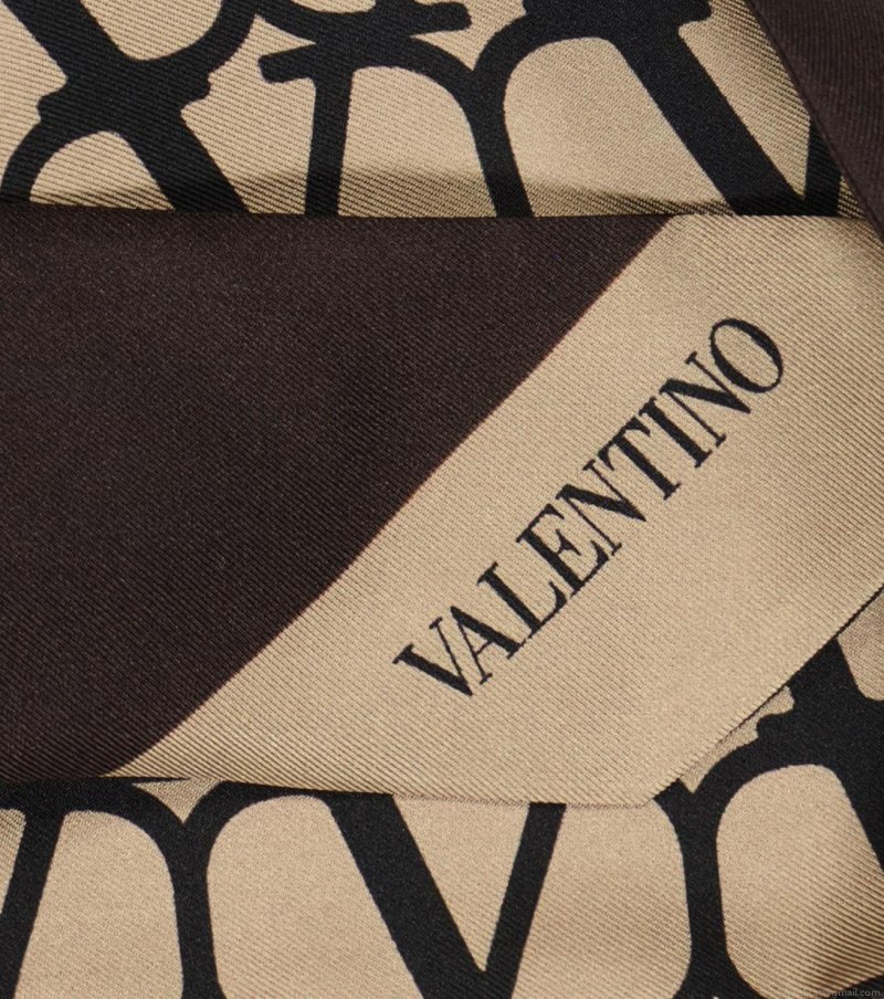Valentino's Toile Iconographe collection introduces a '70s-inspired repeating VLogo pattern that has a striking visual impact. The pattern is featured on this scarf, made entirely from silk.