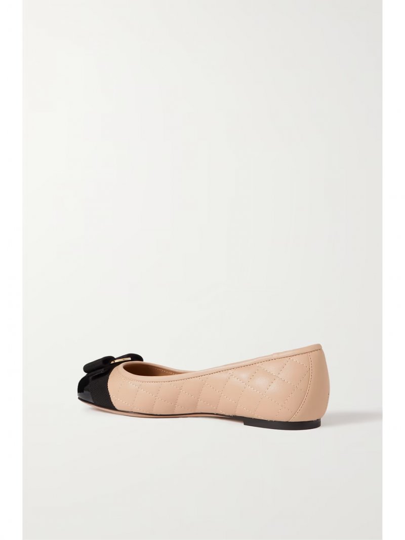 - Beige leather, black patent-leather (Calf) and grosgrain