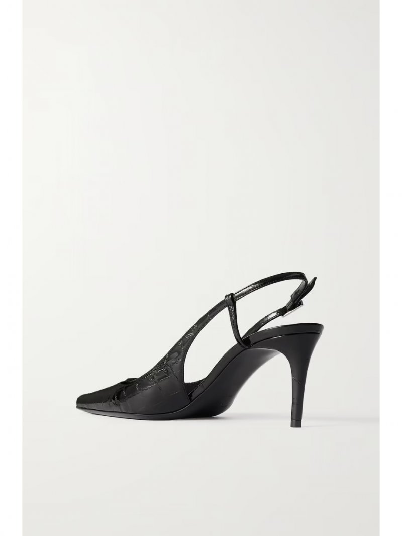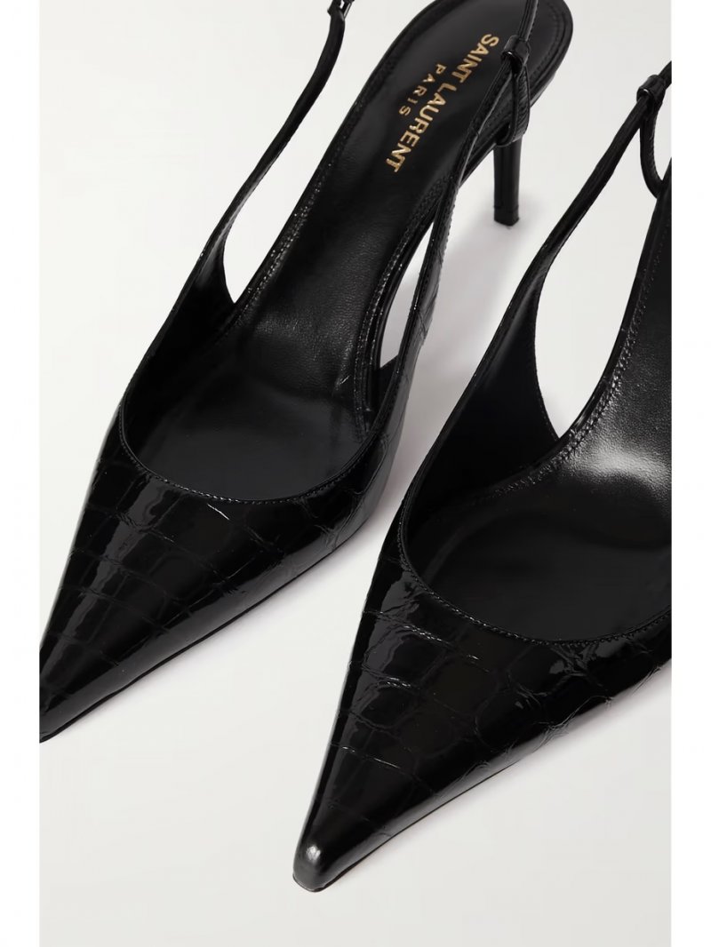 - Black glossed croc-effect leather (Calf)