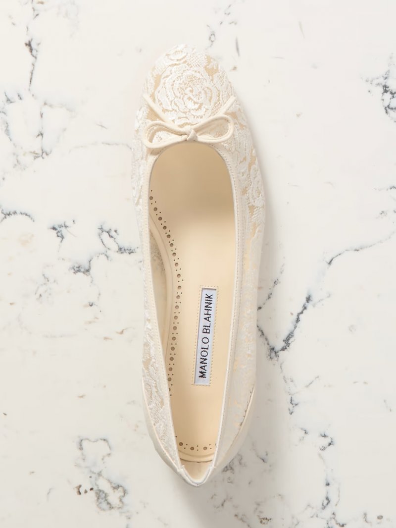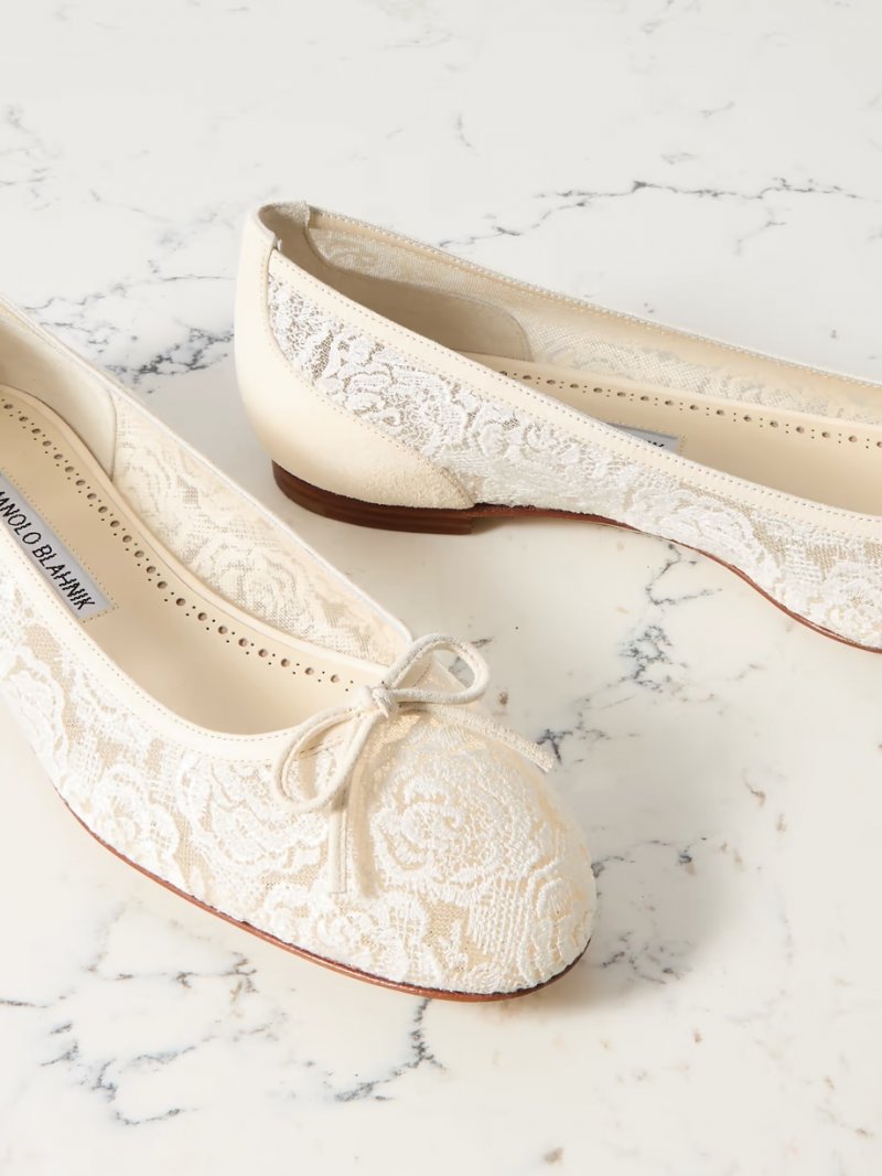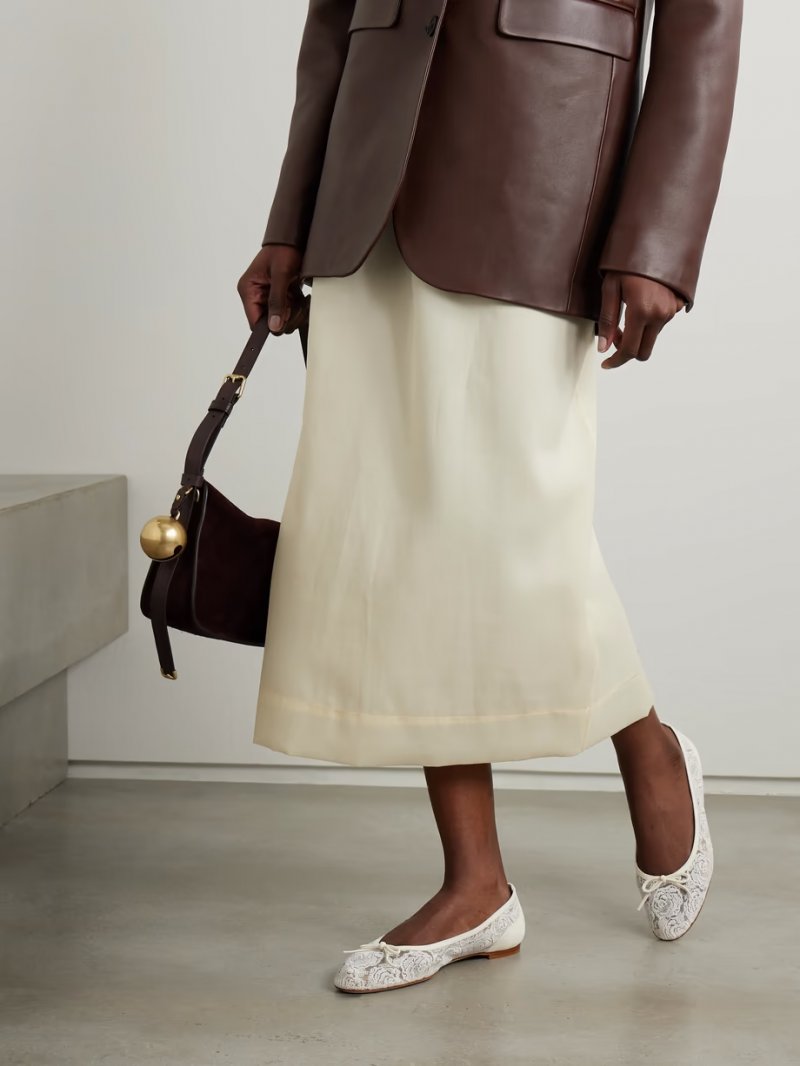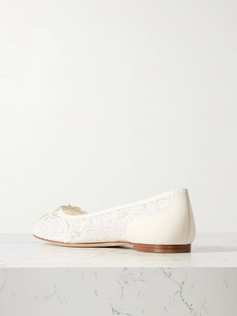 - Ivory cotton-blend lace and suede (Kid)