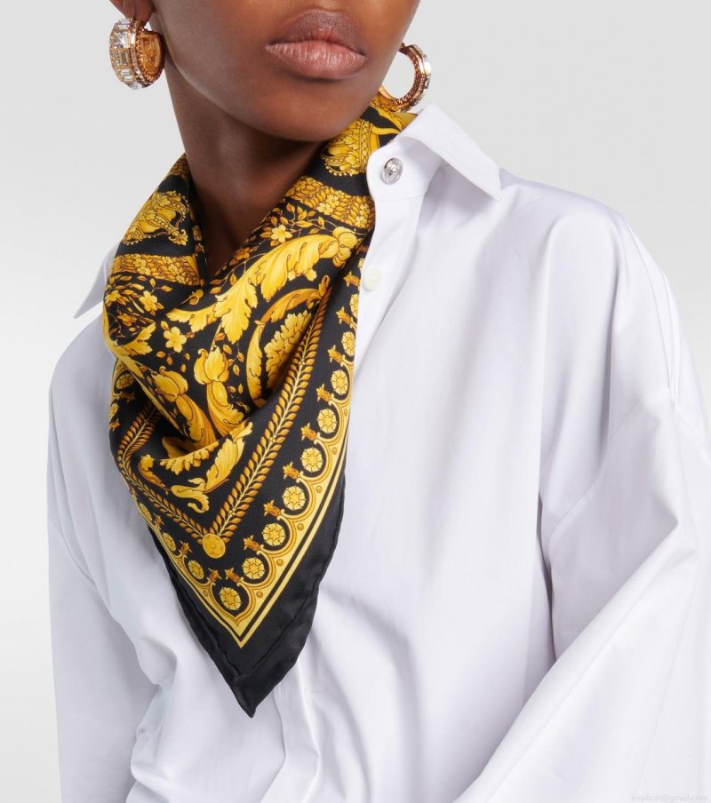 Versace's Baroque-inspired prints recall the intricate ornamentation of the 17th century. This square scarf is made from a lustrous silk twill and printed with the brand's iconic motif.