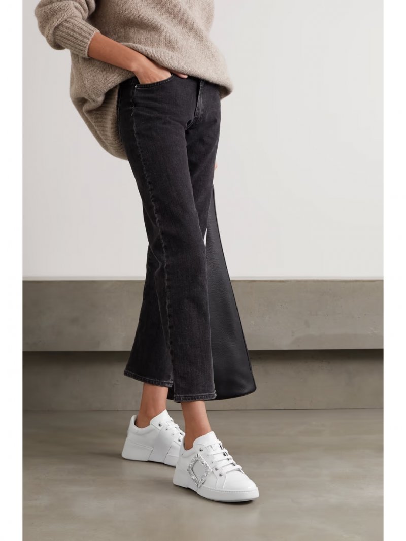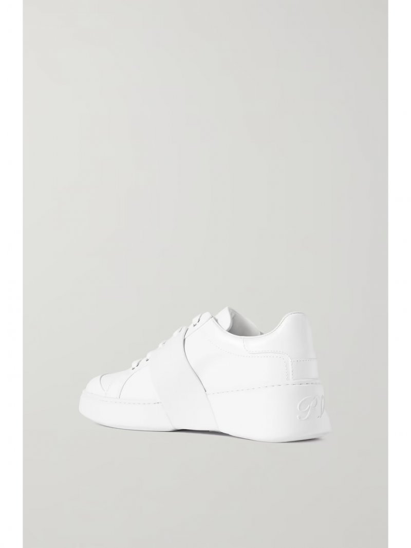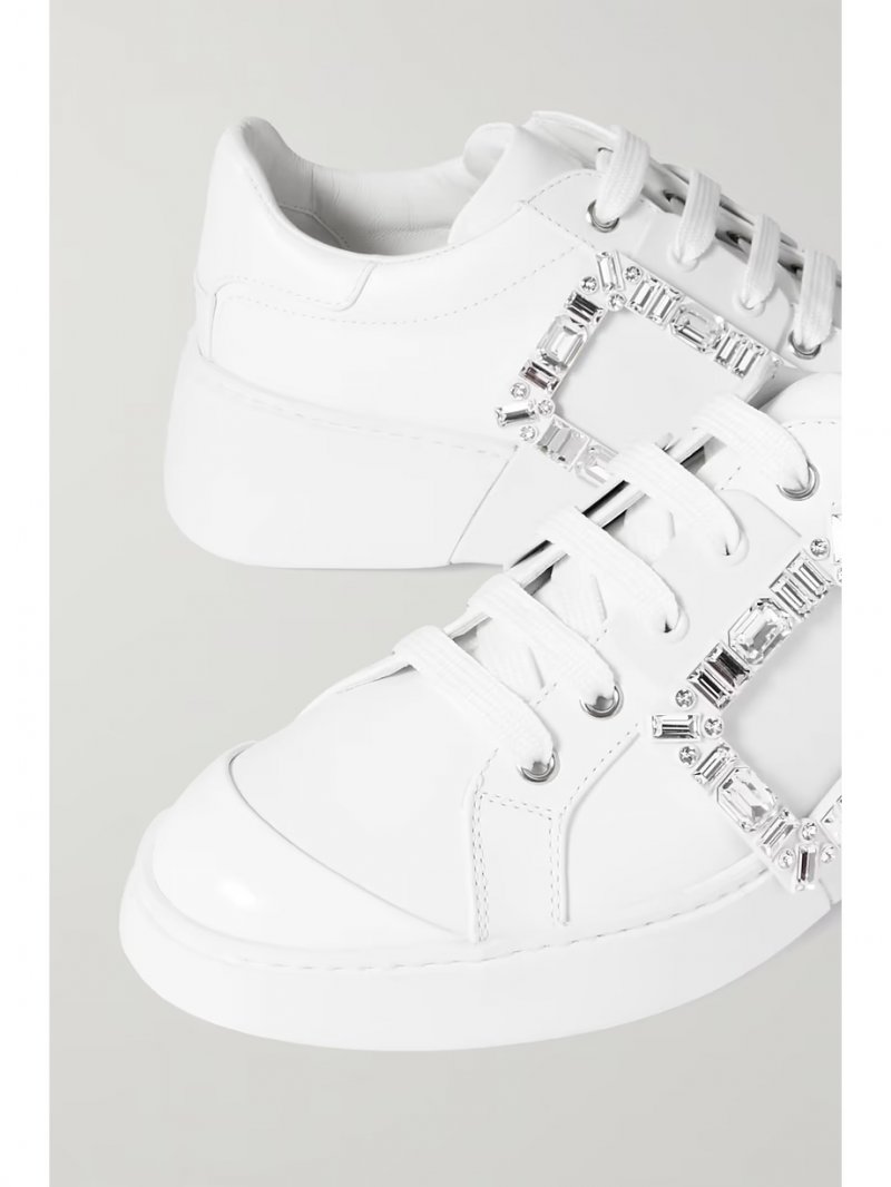 - White leather and rubber